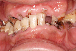 虫歯や歯周病でボロボロになった歯をインプラント、義歯を含めた包括治療をしたケース